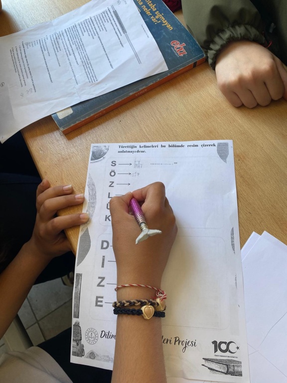 Dilimizin Zenginlikleri Projesi kapsamında okulumuzun tüm sınıflarında öğretmenlerimizin aracılığıyla "Baş Harflerini Değiştir Etkinliği" düzenlendi. Bu etkinlikte öğrenciler gruplara ayrılarak verilen harflerden kelimeler türettiler. Bazı sınıflarda türetilen kelimelerin resmedilmesi sağlandı. Bu sayede öğrencinin zihninde sözcüğün görüntüsü netleştirilmiş oldu.