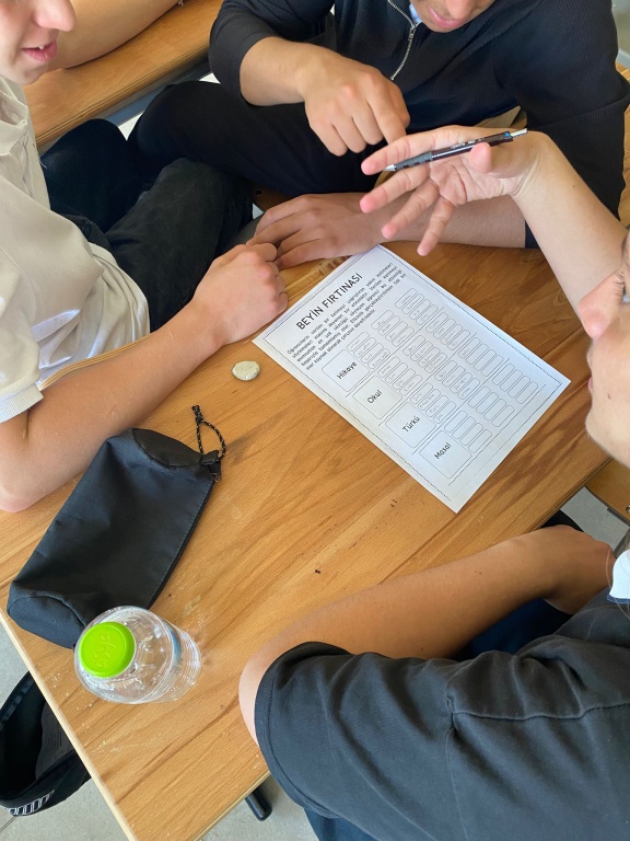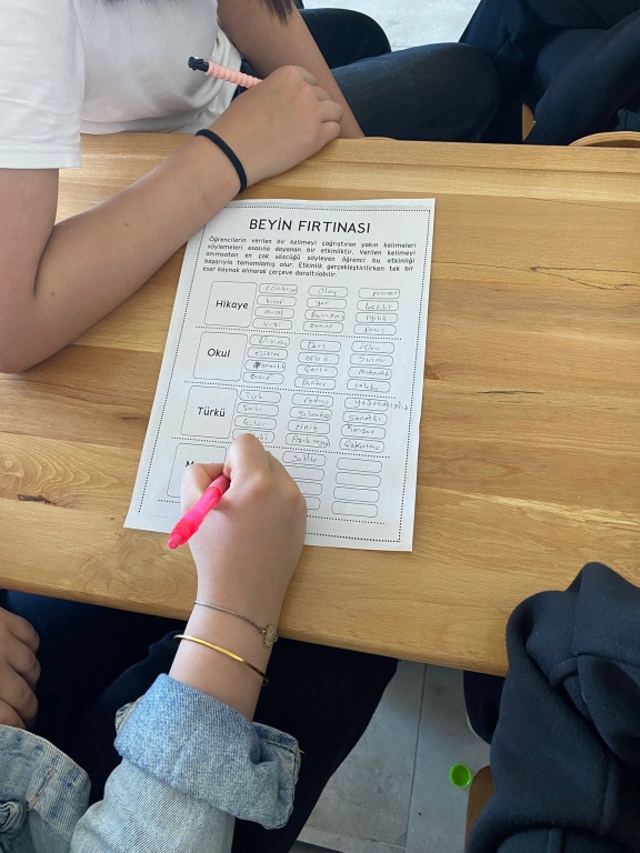 Dilimizin Zenginlikleri Projesi kapsamında okulumuzda tüm sınıflarımızda öğrencilere dağıtılan etkinlik kağıtları ile öğretmenlerimizin gözetiminde grup halinde beyin fırtınası etkinliği düzenlendi. Daha sonra sınıflarımızda öğretmenlerimiz tarafından öğrenci grupları oluşturuldu ve öğretmenlerimizin belirlediği kelimeler, tahtaya çıkan grup temsilcisi bir öğrenci tarafından kendi grubuna sözsüz bir şekilde anlatıldı. Kazanan gruplarımıza ödüller verildi.